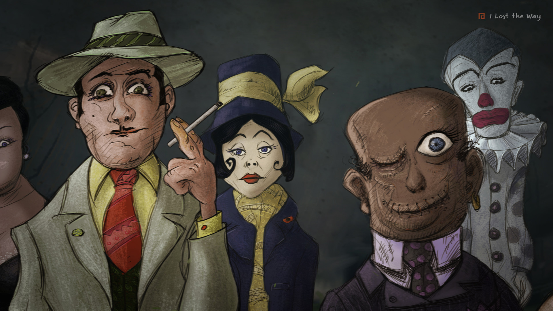 The drawings of this film were made blindfolded, that is, without looking at them while drawing but using only tactile cues