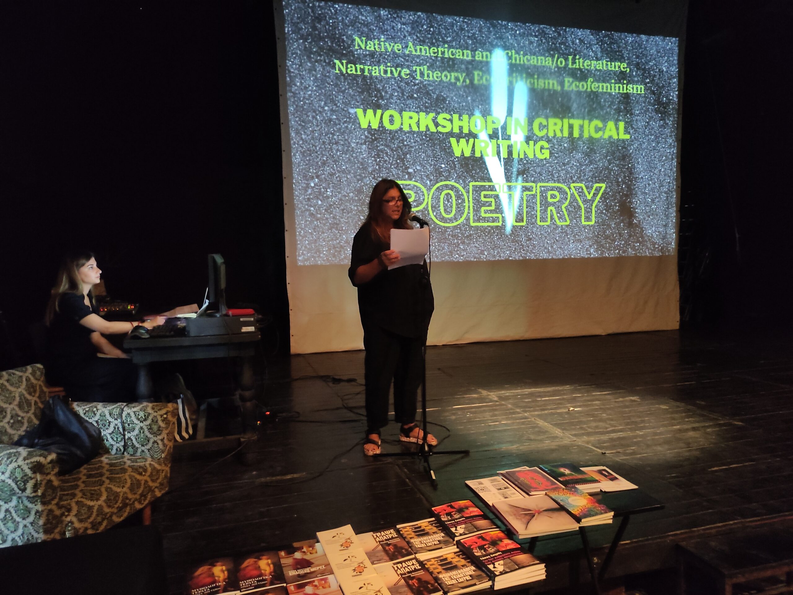 We thank all the Greek poets who came up the stage and surrounding by music and optical poetic environment presented their poetry in the international audience.