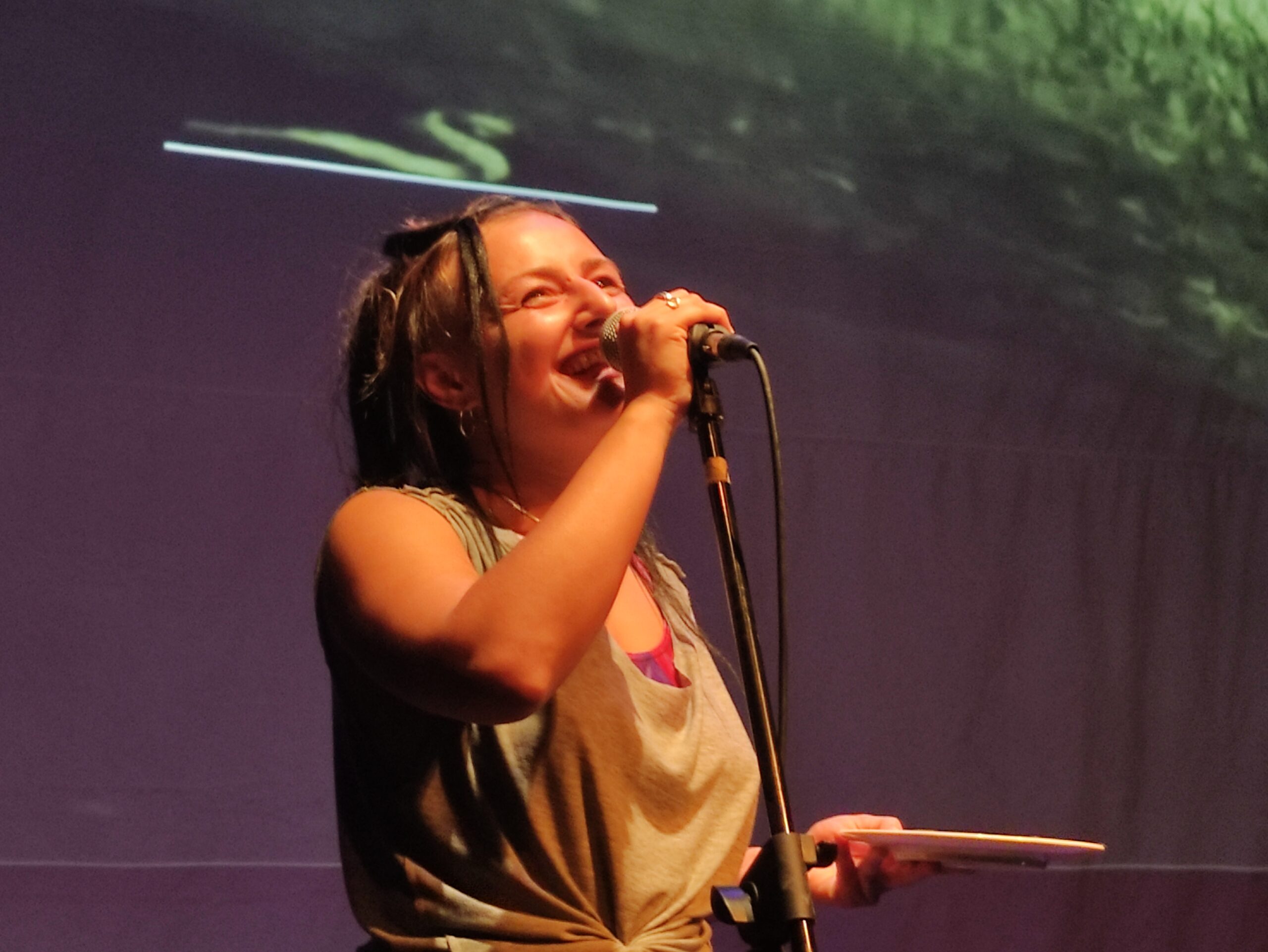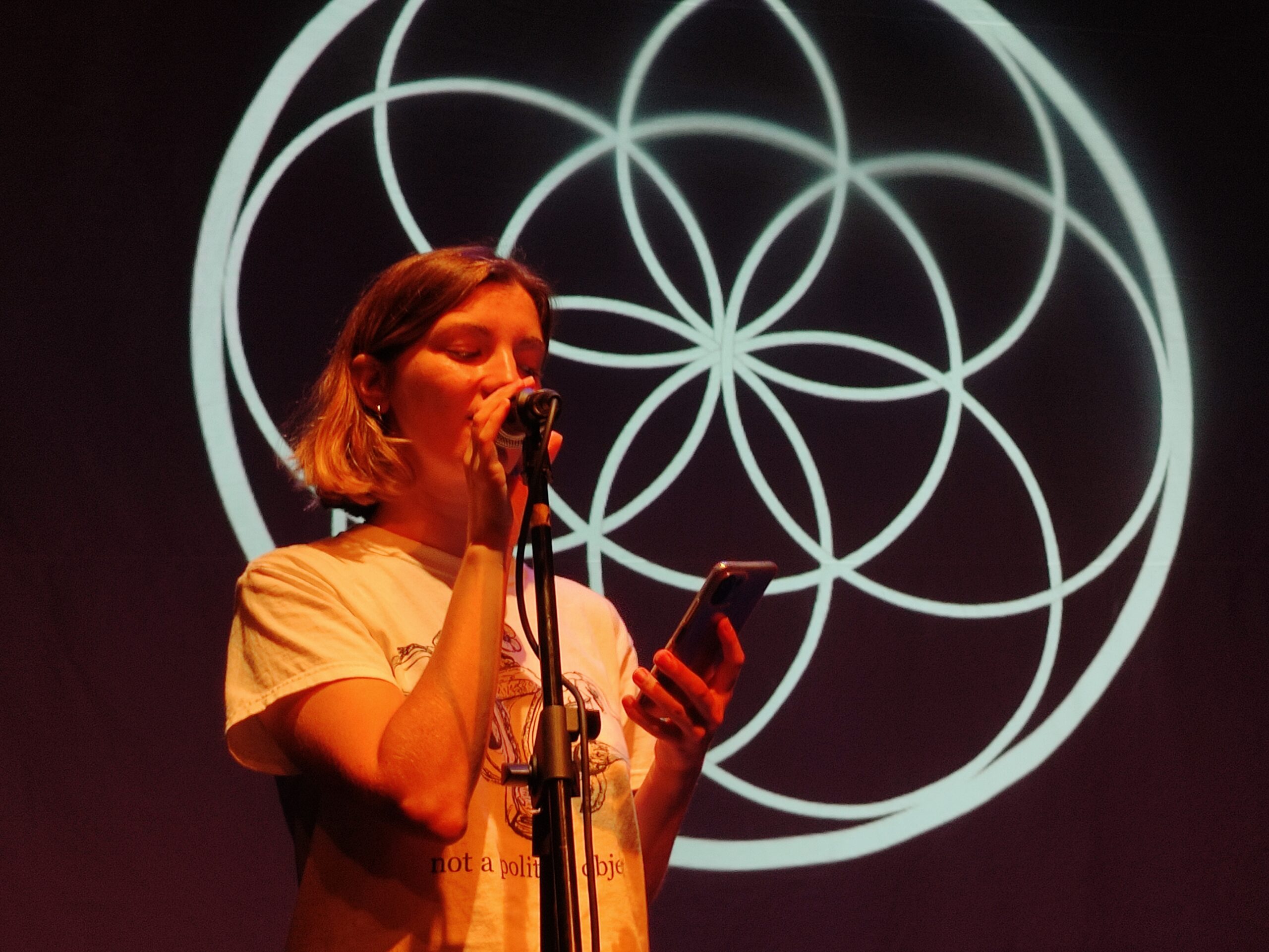 A unique workshop. Avigail invited everyone on stage to find a word that describe their self and spoke about Zen Poetry. The participators enjoyed her voice and her instructions for a nice warm zen mediation on the stage of the festival.